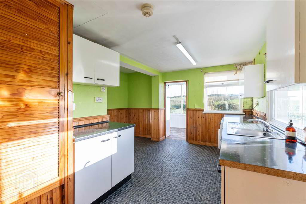 Open plan kitchen and dining area with high and low storage. Plumbed for washing machine and space for dishwasher. Access to Sunroom. Access to hotpress. - SUNROOM