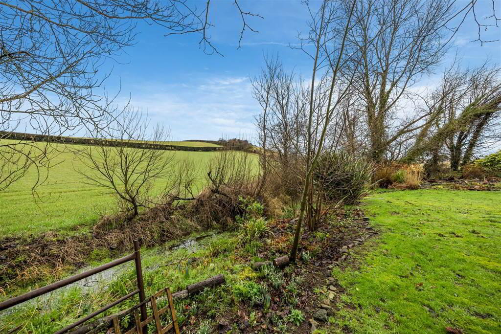 Spacious kitchen with an array of features such as a freestanding "Stanley" Aga style stove with 2 hot plates (linked to heating), 4 ring gas hob with double oven, ample high and low storage and space for a free standing fridge freezer. Tiled flooring and half tiled walls with rear aspect views of the rear garden and surrounding countryside. Access to lower level. - DINING ROOM: