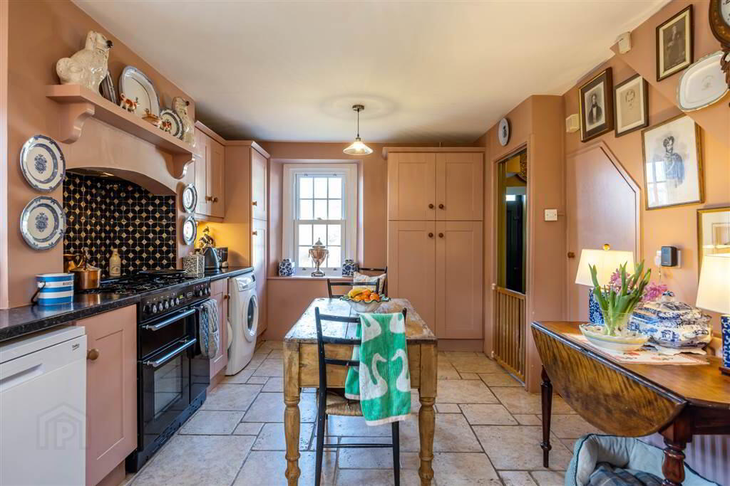 The kitchen in No 73 is both functional and full of personality. Maintained to a high standrad it offers plenty of storage and workspace .Tiled flooring throughout. Both front & side aspect with lots of natural light. Free standing washing machine & dishwasher included. Range Master 5 ring gas cooker. Separate storage cupboard. Door access into separate dining room. - DINING ROOM: