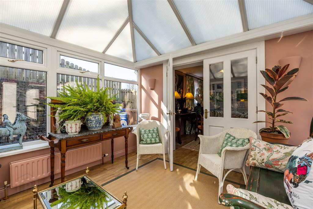 A large formal dining space, specifically designed for formal meals & family gatherings, the dining room retains a sense of occasion. Laminate wood effect flooring throughout. Double glass door access into conservatory. Side aspect. - CONSERVATORY: